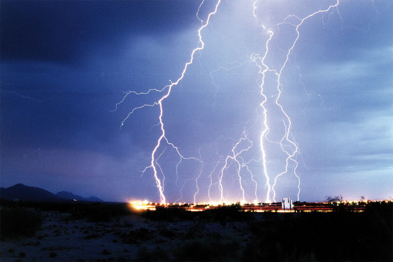 Ein Blitz ist ein Funkenüberschlag großen Ausmaßes zwischen Wolken mit entgegengesetzter Ladung oder zwischen Wolken und der Erdoberfläche. Der gesamte Blitzvorgang beginnt mit Vorentladungen, die den Entladungskanal aufbauen. Innerhalb einiger Zehntelsekunden beginnt die Hauptentladung, der weitere Teilentladungen im Abstand von hundertstel bis tausendstel Sekunden folgen. Durch die explosionsartige Erhitzung der Luft im Blitzkanal (innerhalb von Mikro- sekunden auf ca. 30000 °C) entsteht der nachfolgende Donner.
