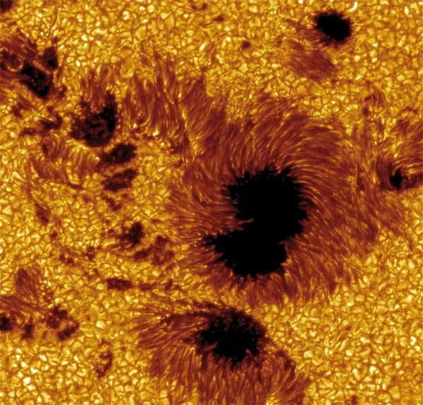 Die Sonne leuchtet nicht immer gleich. In einem 11-jährigen Zyklus überziehen dunkle, kühle Flecken (Sonnenflecken) das Antlitz unseres Zentralgestirns. Jedoch führen mehr Sonnenflecken an der Oberfläche der Sonne nicht zur Verringerung, sondern im Gegenteil zur Erhöhung der Gesamtstrahlung der Sonne. Denn parallel zu den dunklen Flecken zeigen sich auch mehr helle Fackelgebiete.